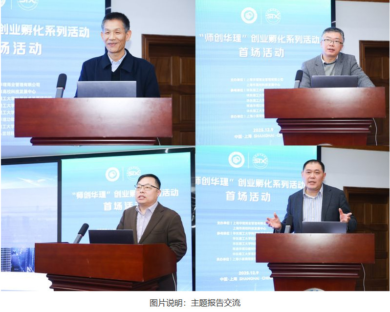 12月9日上午,由华理商业管理有限公司和上海市高校科技发展中心联合举办的“师创华理”创业孵化系列首场活动在逸夫楼报告厅举行。我校党委常委、副校长赵黎明出席活动并致辞。我校党委常委、宣传部部长柴华,上海市高校科技发展中心副主任蒋皓,上海市科委新能源技术处处长赵一新出席活动。活动由学校商业管理有限公司副总经理曹学主持。